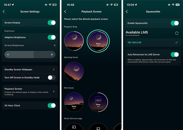 A fenti képen a harmadik képernyőfotó pedig a Squeezebox-integrációt mutatja. Ha engedélyezzük a Squeezelite opciót, akkor a hálózatunkon futó Logitec Media Server (LMS) pont úgy fogja látni a Sound-ot (illetve más WiiM lejátszókat is), mint egy Squeezebox lejátszót! Ez különösen örvendetes számunkra, hiszen 2006-ban a Lejátszó.hu első terméke a Slimdevices Squeezebox volt, gyakorlatilag ezen hálózati lejátszónak köszönhető, hogy lassan 20 éve elindult az oldalunk. Jó látni, hogy nem véletlenül éreztük akkor korszakalkotó készüléknek a számítógépes zenei formátumokat hálózatról, NAS-ról is lejátszó, multiroom-rendszerben is használható Squeezebox modelleket! 20 évvel később – mikor már nem is létezik ez a termékcsalád („hála” a Logitech-nek, amely a Slimdevices felvásárlása után gyorsan tönkre is tette a Squeezbox-okat) –, egy új zenelejátszónál a gyártó gondol arra, hogy a máig működő Squeezebox-rendszerekbe is integrálható legyen.